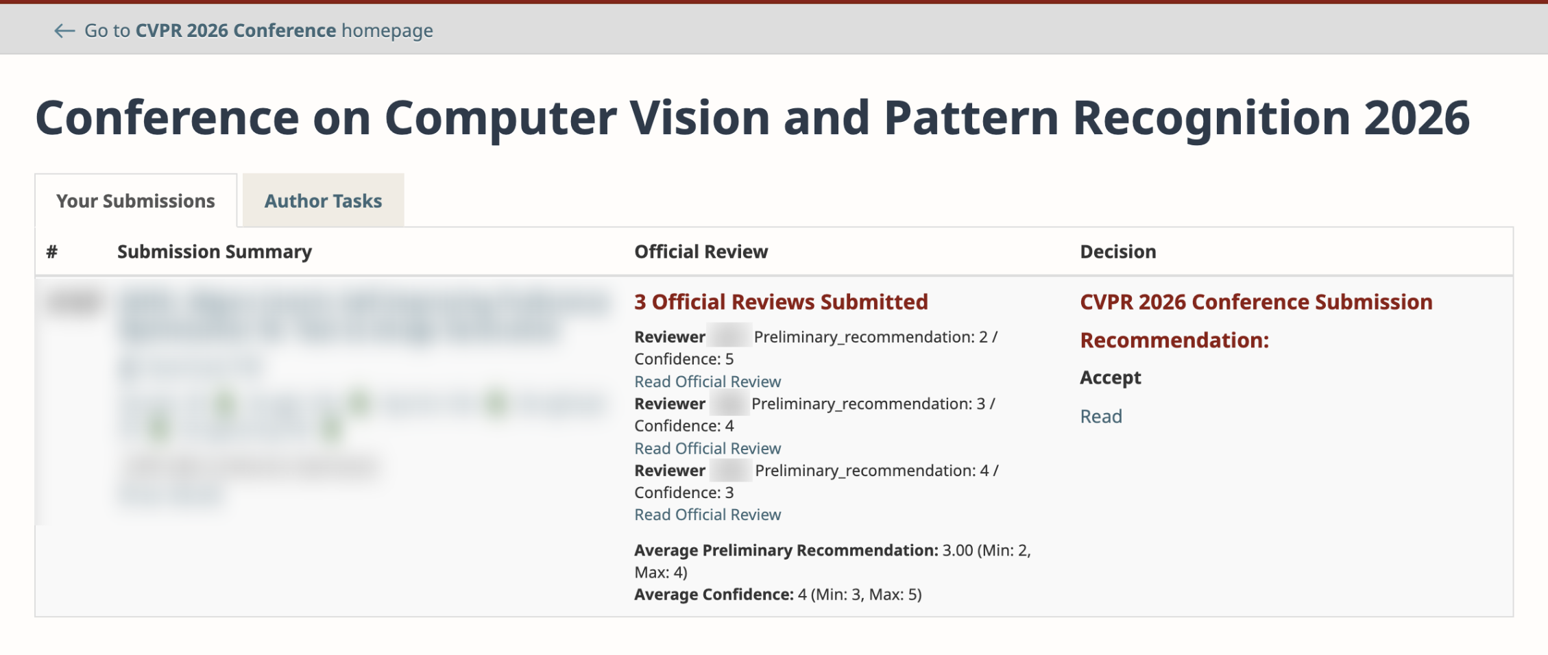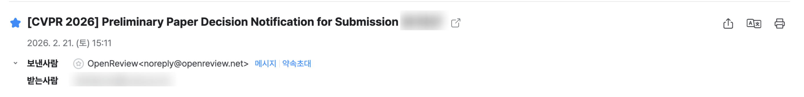 이번 Acceptance 는 단순한 성취 이상으로, 정말 내게 큰 의미를 갖는다. 사실 Rebuttal 이후 최종 결과를 기다리는 한 달 동안 심적으로 많이 힘들게 보냈다. 리뷰 점수가 안정권이 아니었던 탓에, (사실은 오히려 부정적인 편에 가까웠다.) 교수님을 포함한 주위의 모두가 이 논문을 잠정적 Reject 으로 생각하는 것이 느껴졌기 때문이다.